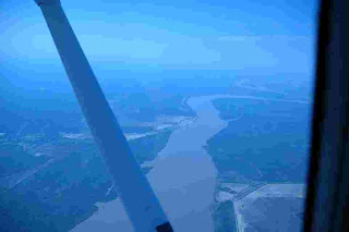 Taking off from Paducah KY. View is from 7000’ altitude of Lake Barkley (shown below the Cumberland River which proceeds toward Nashville, TN) 88 deg. 28 ‘ long. 36 deg. 48’ latitude.